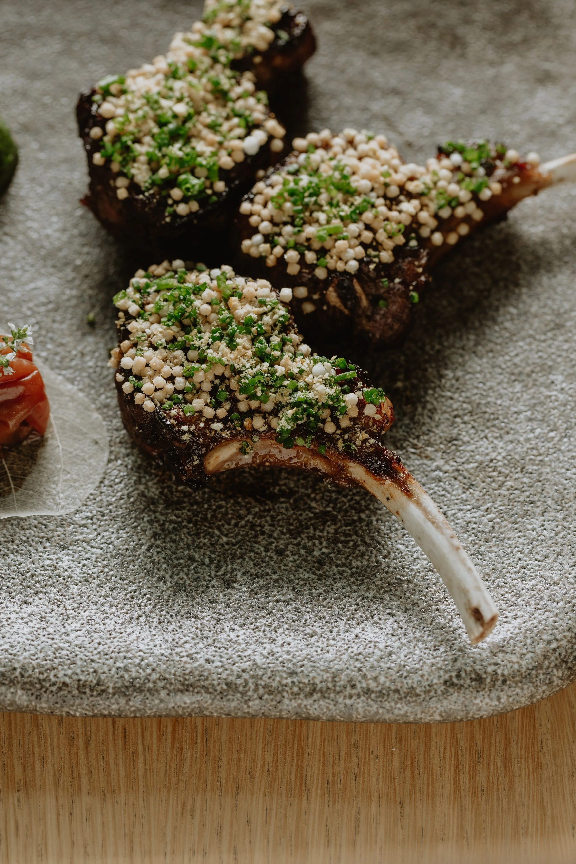 By the time the Lumina lamb cutlets arrive — yuzu natto shisho marinade, fermented kimchi, herb miso, ume boshi — it’s clear that Aki isn’t just about style or setting. The kitchen understands restraint; every flavour has its place. Even the Japanese millefeuille that rounds off the meal, made with sobacha, whipped vanilla ganache and aged soy caramel, feels quietly sophisticated — a dessert that nods to tradition without falling into cliché.