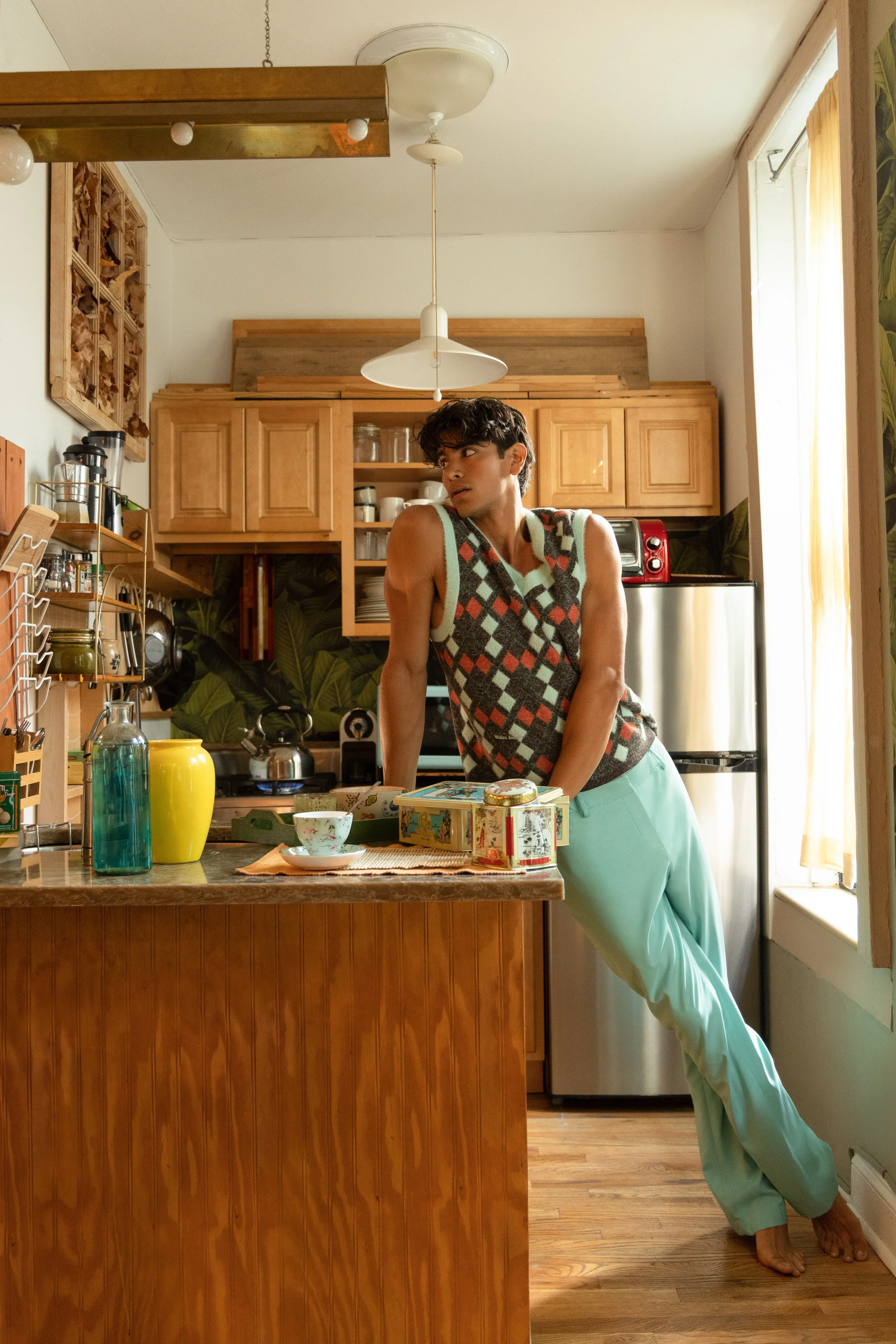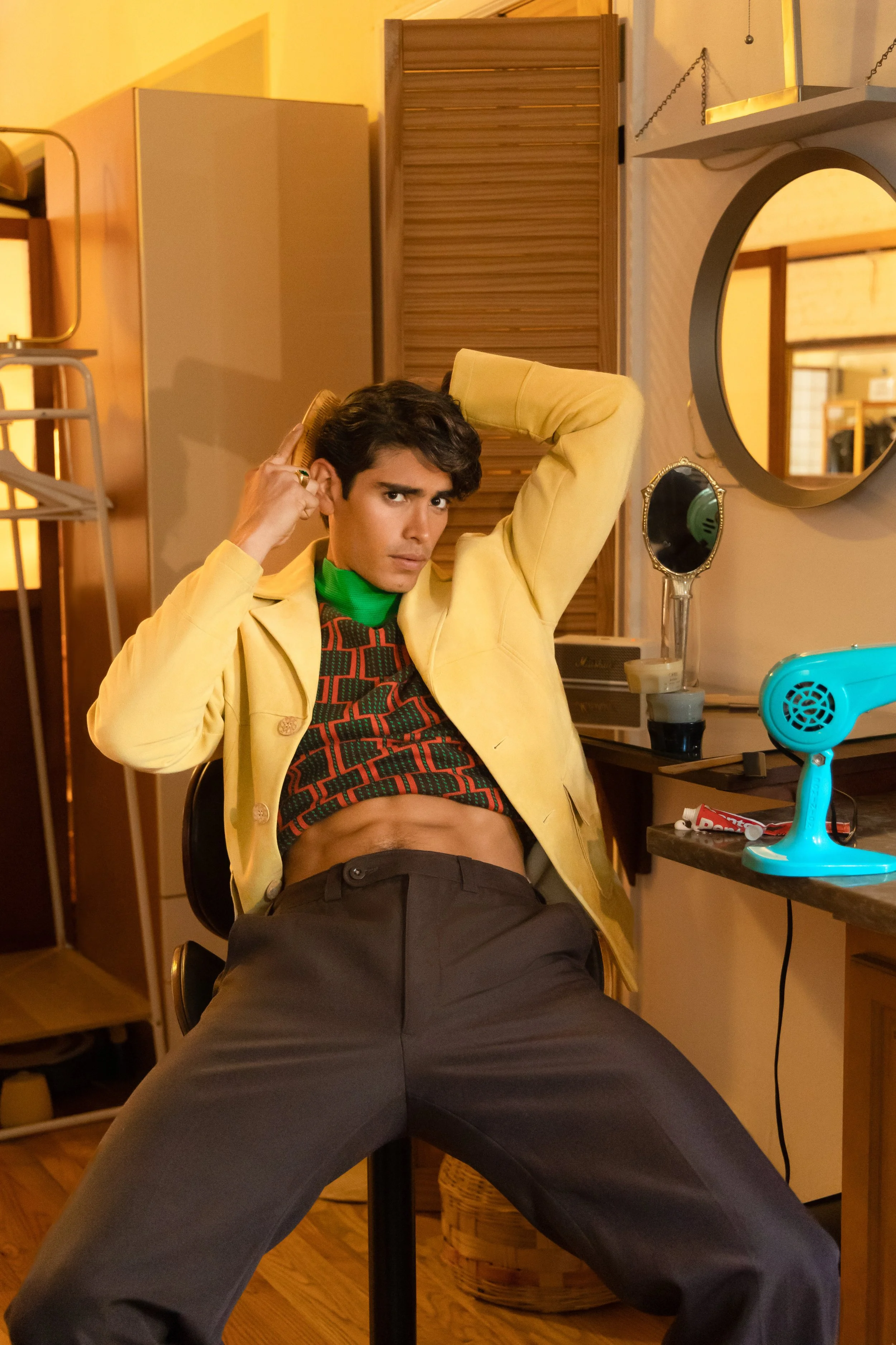 Jacket - Sefr, Top - Wales Bonner, Trousers - Gucci