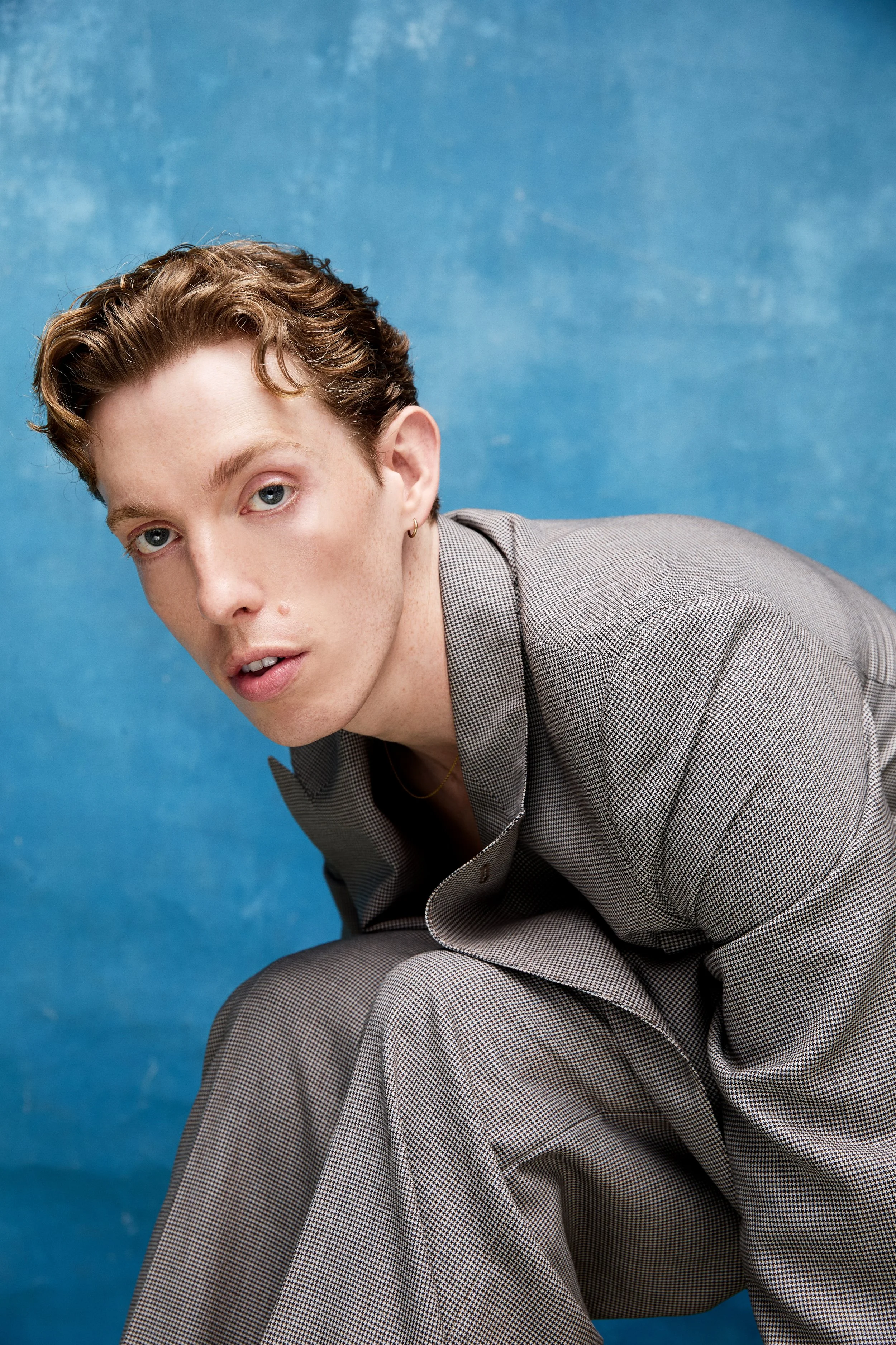 He speaks often of balance. Between acting and writing. Between fun and normal. Between the slightly fabulous and the totally grounded. “I’m a sucker for a routine so I always try and put energy into getting some sort of structure in my life.” The anchor for that, he adds, is surprisingly practical: “Swimming and therapy. And wide-legged trousers.” There’s also a grooming tip: “Sometimes I paint my nails with clear nail varnish to make it look like I’m brimming with health and take lots of cod-liver oil. That’s a little hack from me to you.”